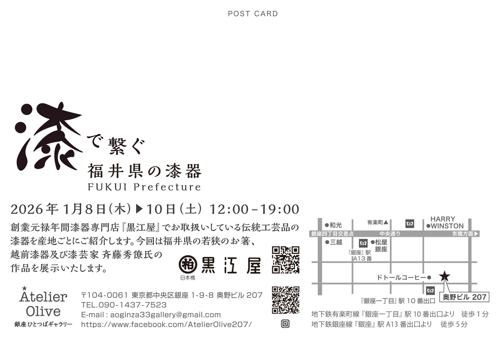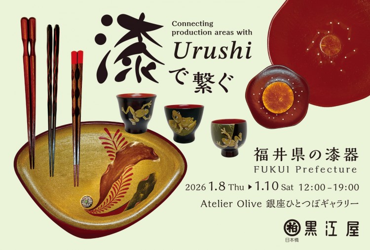 2026.01.01 「黒江屋」店舗からのお知らせ 2026年1月8~10日(11時30分~19時) 「漆で繋ぐ~福井県の漆器~」を「Ateler Olive 銀座ひとつぼギャラリー」 (於:銀座奥野ビル207)にて開催いたします。
